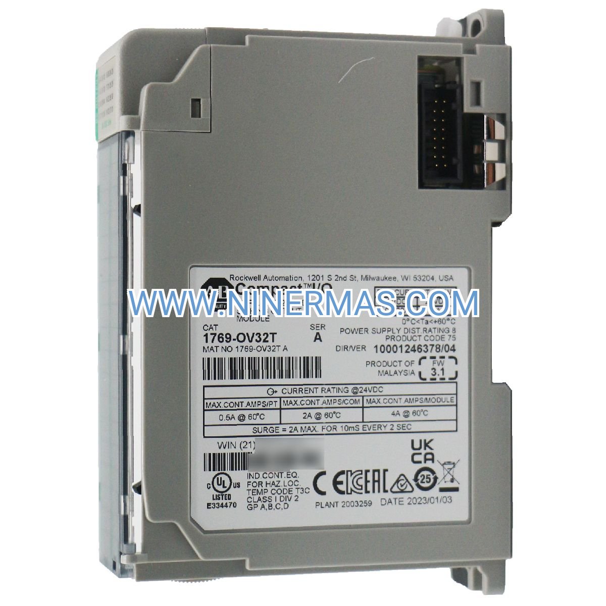 | Current per Point | 0.5A continuous, 0.75A surge (10ms) | For >0.5A loads, use 1769-OB32 (2A/point) or external contactors |