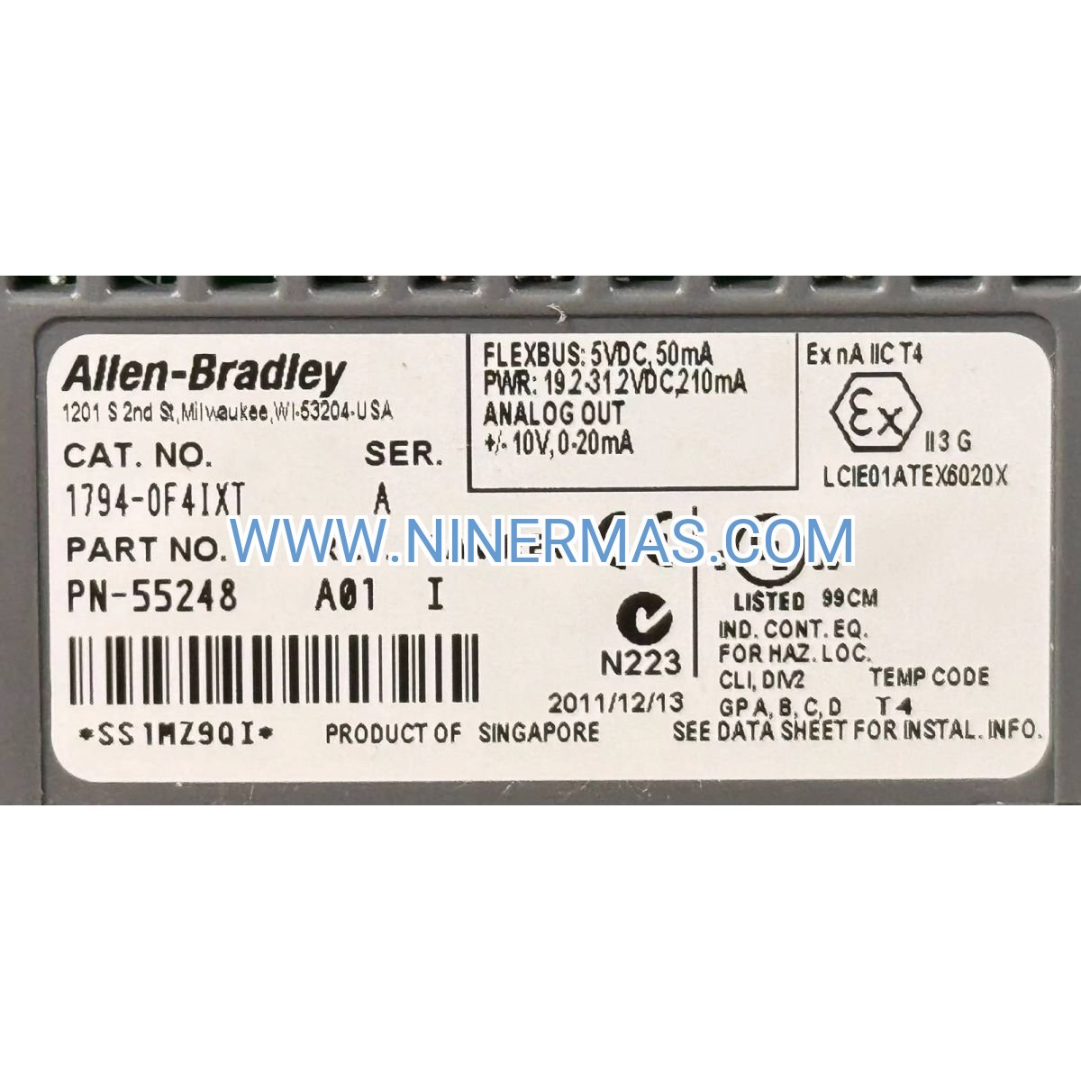 A: The 1794-OF4IXT is a standard I/O module and is not certified for safety functions per IEC 61508 or IEC 61511. For safety-instrumented systems (SIS) requiring SIL 2 or SIL 3 rated outputs, consider Allen-Bradley's GuardLogix safety platform with certified safety I/O modules. However, the 1794-OF4IXT can be used for non-safety control loops within the same system architecture.