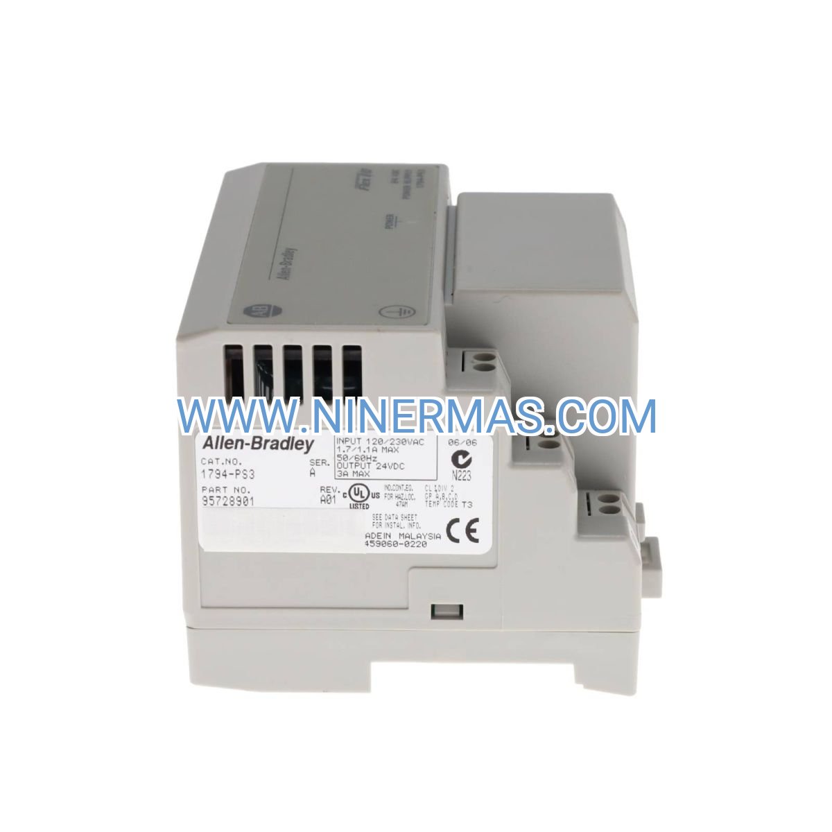 A: The standard 1794-PS3 is suitable for general industrial use (non-hazardous locations). For Class I Division 2 or ATEX Zone 2 applications, verify that the complete enclosure assembly meets area classification requirements. Consult factory for hazardous location certifications or consider explosion-proof enclosure solutions with appropriate temperature ratings.