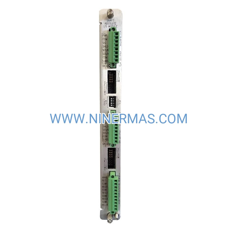 The module accepts 1-4 transducer inputs including Bently Nevada Proximitor displacement sensors (3300 XL series), Velomitor velocity transducers, and Seismoprobe accelerometers. You can mix sensor types across channels—for example, proximity sensors on channels 1-2 for shaft displacement and accelerometers on channels 3-4 for bearing housing vibration.