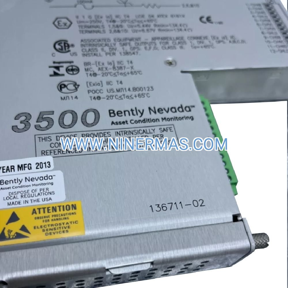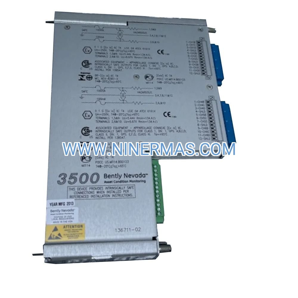 The Bently Nevada 3500/61 136711-02 delivers precision temperature surveillance for mission-critical rotating machinery in hazardous industrial environments. This rack-mounted I/O module combines 6 universal input channels, integrated intrinsic safety barriers, and ±0.5°C measurement accuracy to protect turbines, compressors, and generators from thermal failures.