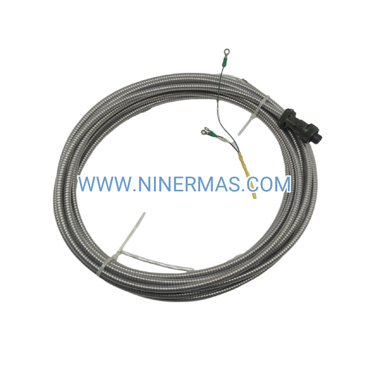 The Bently Nevada 84661-30 Armored Interconnect Cable is a precision-engineered 30-foot signal transmission solution designed for demanding industrial vibration monitoring applications. Through advanced multi-layer electromagnetic shielding and stainless steel armor construction, this cable delivers reliable, low-noise connectivity between 330505 Low Frequency Velocity Sensors and 3500/46M Hydro Monitor modules, ensuring accurate detection of bearing defects, unbalance conditions, and structural anomalies in rotating machinery.