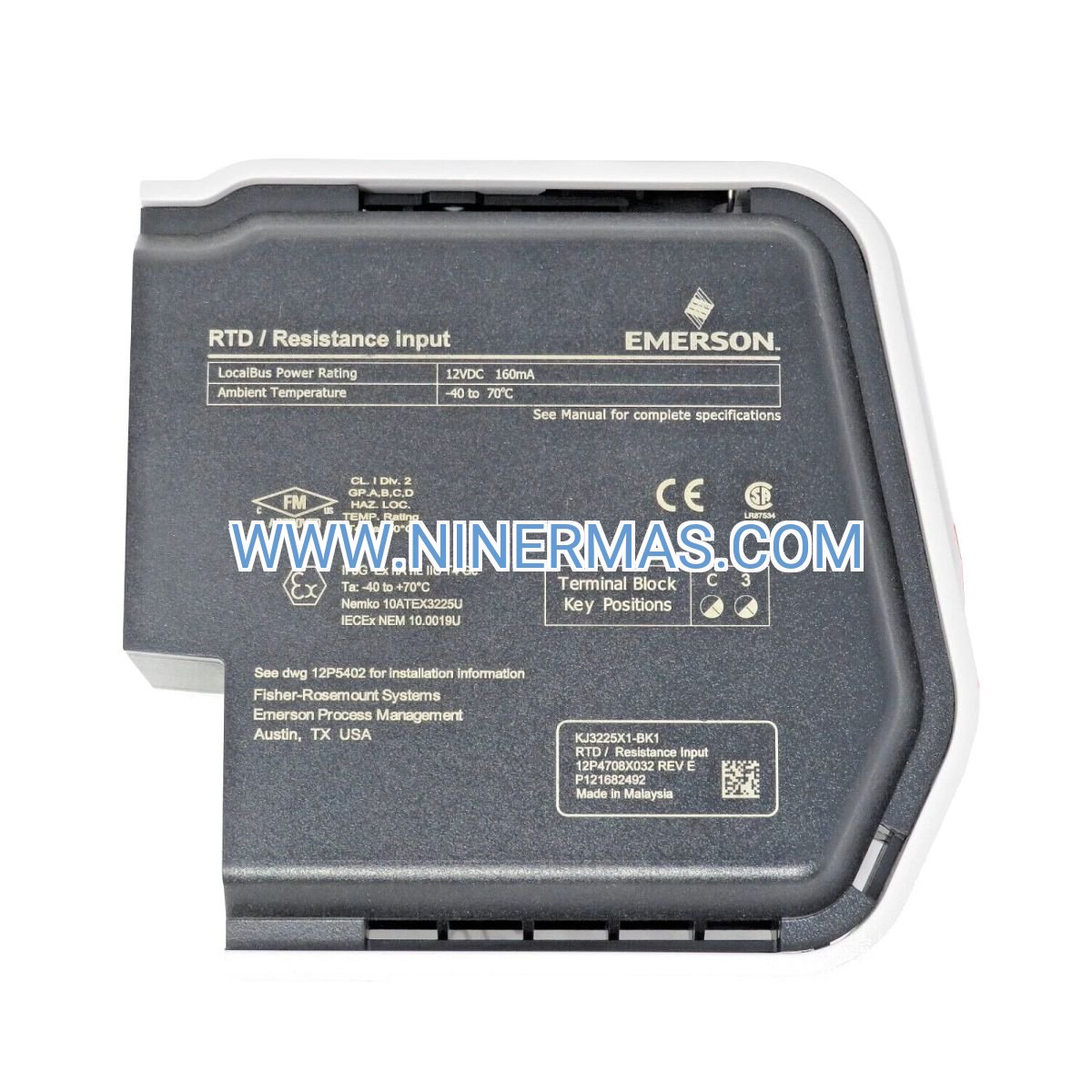 A: The KJ3225X1-BK1 carries ATEX Zone 2 and IECEx certification for installation in non-hazardous control rooms monitoring sensors located in Zone 1/Division 1 hazardous areas. Intrinsically safe barriers (e.g., MTL, Pepperl+Fuchs) must be installed between the card and field sensors when RTDs are located in Zone 0/Division 1 explosive atmospheres. Consult local electrical codes and Emerson application notes for specific barrier selection and grounding requirements.