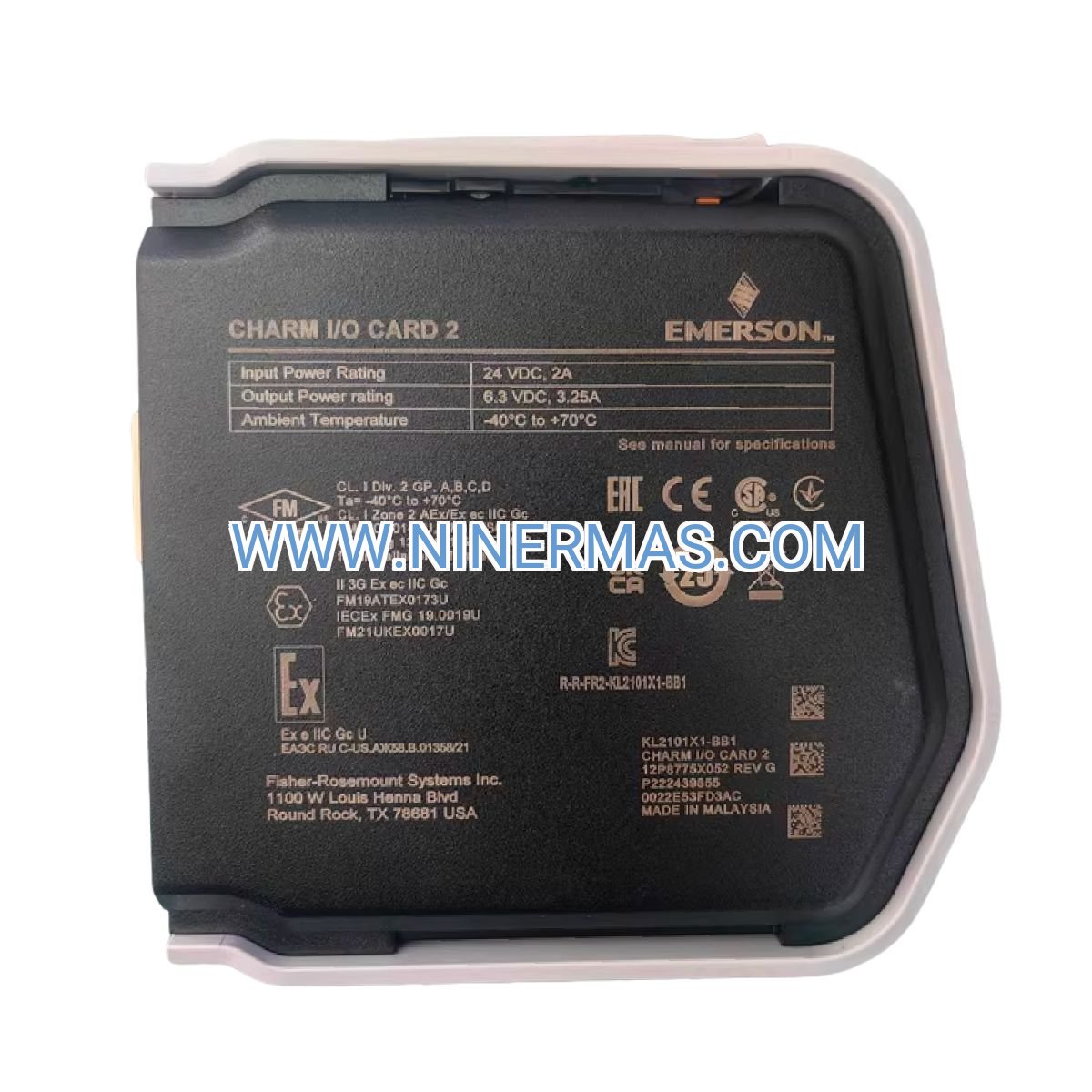 The KL2101X1-BB1 itself is not IS-rated. For Zone 0/Division 1 applications, pair with Emerson's IS barriers (e.g., KL2151X1 series) or use the CIOC2-IS variant with integrated galvanic isolation. Verify barrier compatibility with your specific field device current requirements.