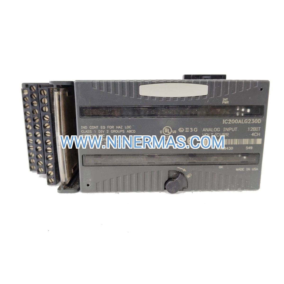 A: The standard IC200ALG230D is designed for general industrial use (non-hazardous locations). For Class I Div 2 or ATEX Zone 2 applications, consult factory for certified versions or use approved intrinsic safety barriers.