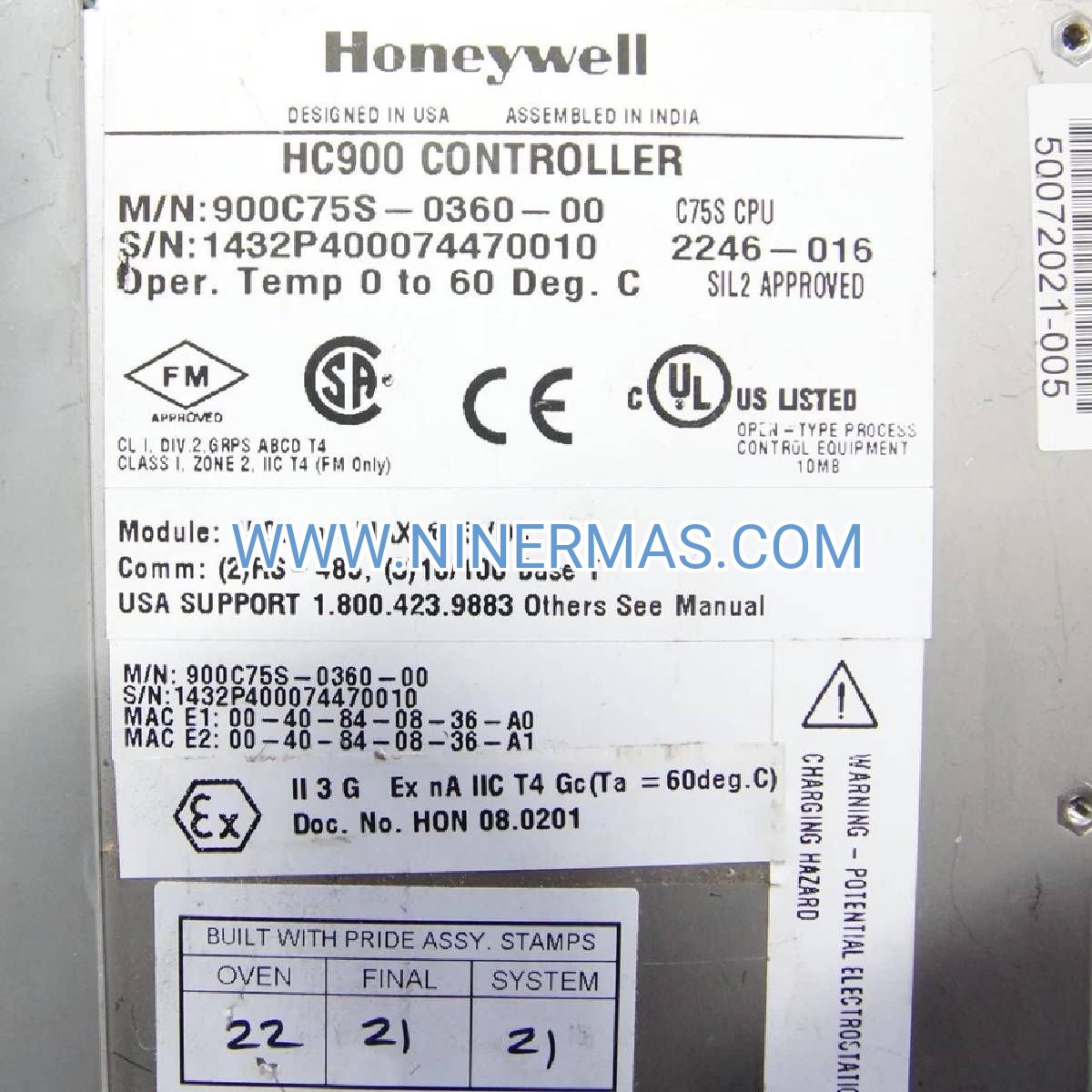 Warranty Coverage: All Honeywell 900C75S-0360-00 controllers include a 12-month manufacturer warranty against defects in materials and workmanship from date of shipment. Extended warranty plans (24/36 months) available with annual calibration and firmware update services.