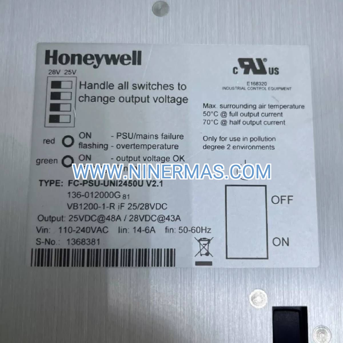 The FC-PSU-UNL2450U represents Honeywell's advanced engineering in industrial power distribution technology. This 1075-watt power module delivers consistent 25-volt DC output at 43 amperes, specifically designed for process control infrastructure, automation networks, and mission-critical manufacturing systems requiring uninterrupted power stability.