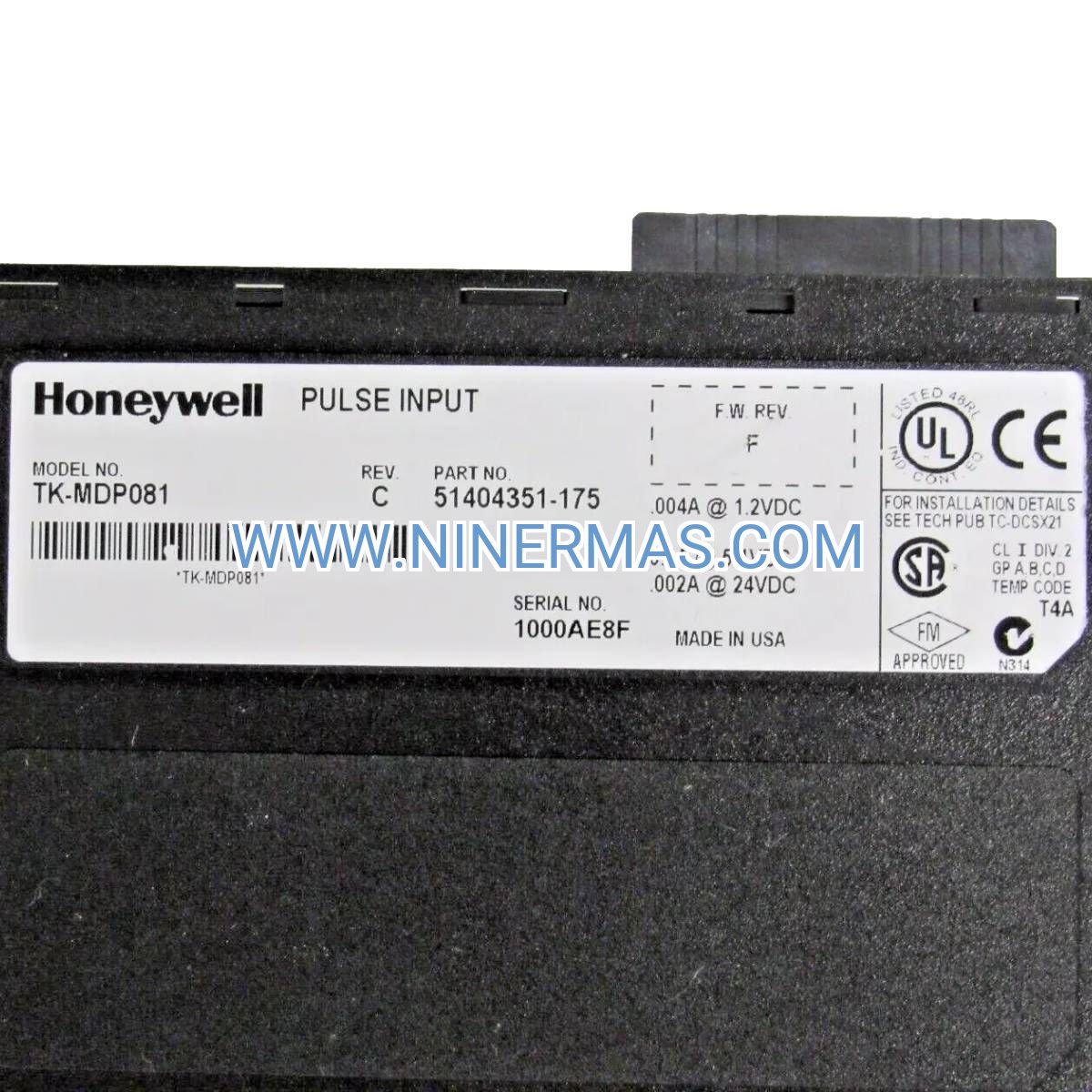 The standard TK-MDP081 is designed for general industrial environments and does not carry intrinsic safety (IS) or explosion-proof certifications. For Class I Division 2 or ATEX Zone 2 applications, install the module in a purged enclosure or consult Honeywell for IS-barrier configurations. Certified intrinsically safe pulse input modules are available as separate product lines.