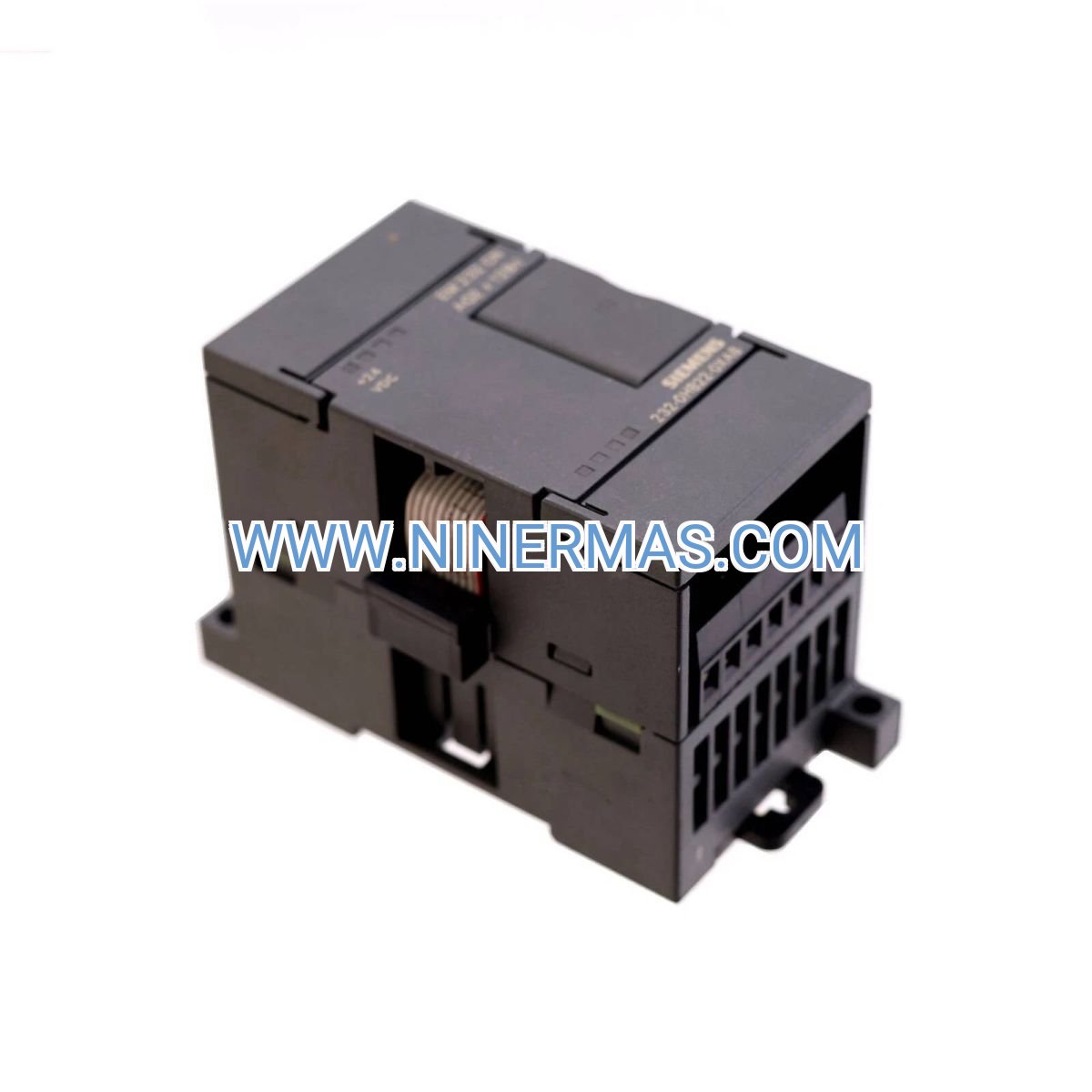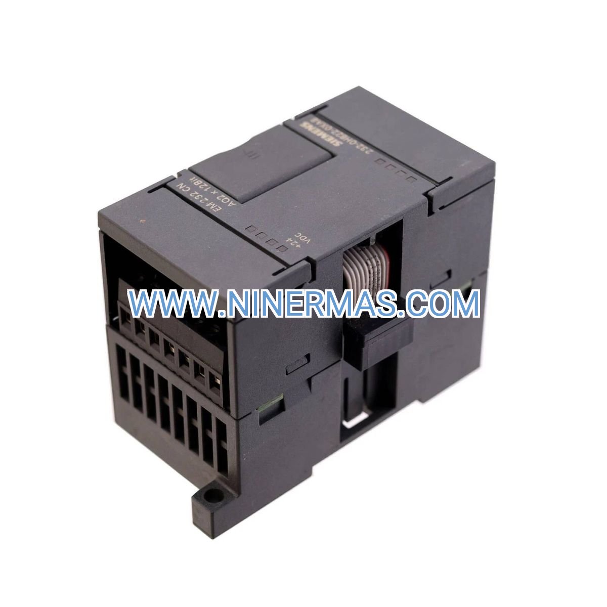 A: The EM 232 mounts directly to the right side of your S7-200 CPU or existing expansion modules via the built-in bus connector. Simply snap the module onto the DIN rail, slide it against the adjacent module until the connector engages, and secure with the locking screw. No external cabling required for bus communication. Field wiring connects to the removable terminal block (terminals 1–10). Refer to the wiring diagram in the user manual for channel-specific pin assignments.