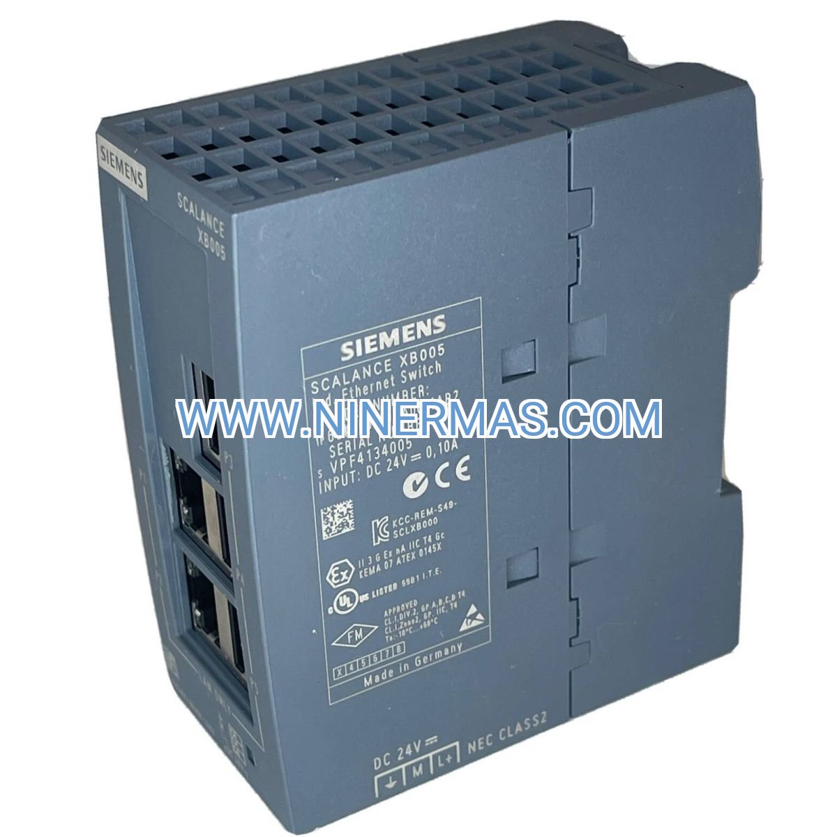 A: No, the X005 does not provide PoE (IEEE 802.3af/at). For PoE requirements, use Siemens SCALANCE XP or third-party industrial PoE switches, then connect the X005 downstream for non-PoE devices.
