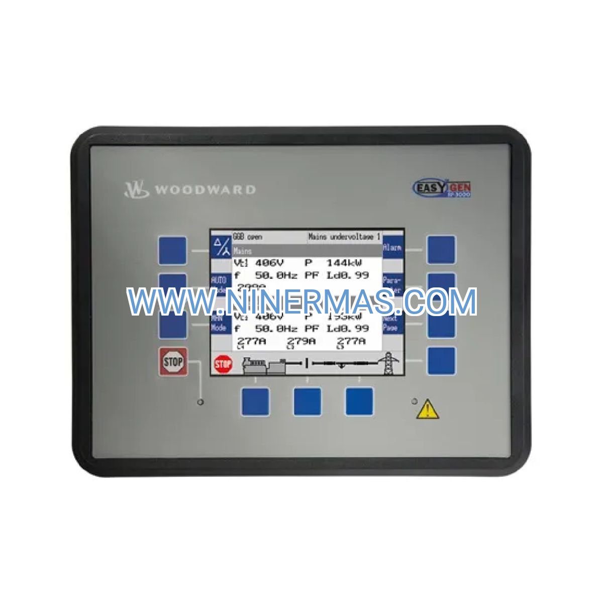 Key differentiators include native support for up to 32 parallel generators, programmable logic for custom sequencing, and multi-protocol connectivity (Modbus RTU, CANbus J1939, Ethernet). The graphical LCD interface simplifies commissioning and troubleshooting, while configurable alarms ensure rapid response to fault conditions. Backed by Woodward's global service network and a 12-month warranty, this controller provides long-term value for mission-critical installations.