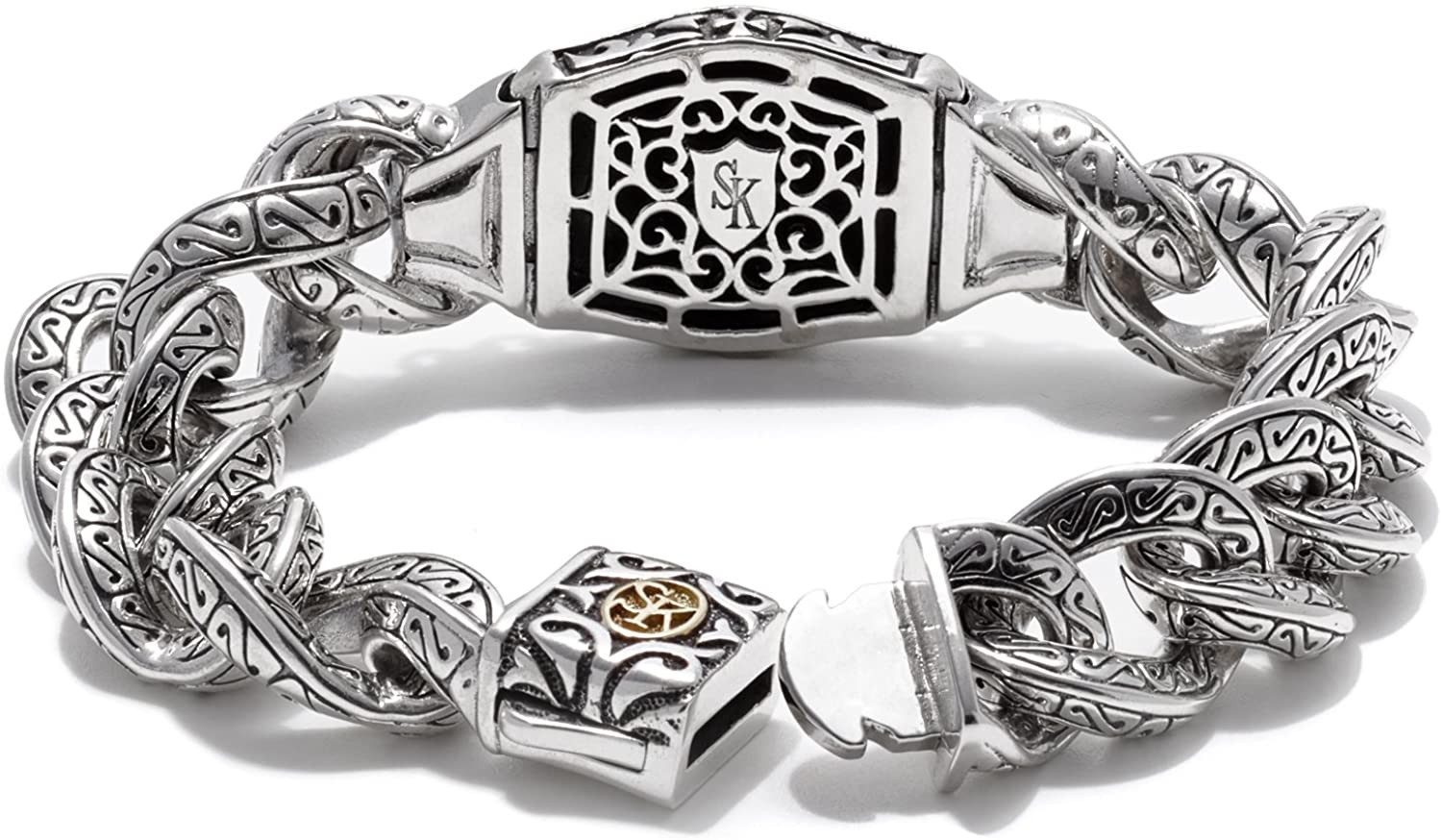 Scott Kay Sparta Collection Sterling Silver Skull Bracelet with Sparta Engraving